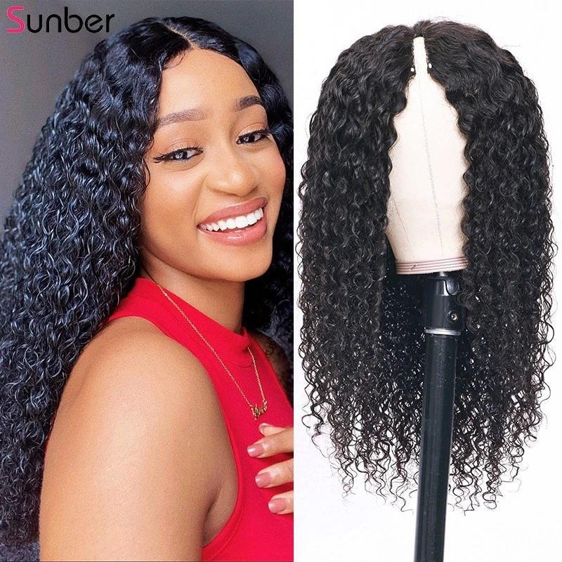 Sunber Curly V Part Wig No Leave Out Thin Part Human Hair Wigs 5 X2 Upgrade U Part Wig No Glue Suityour Natural Hair Lace Wigs Aliexpress
